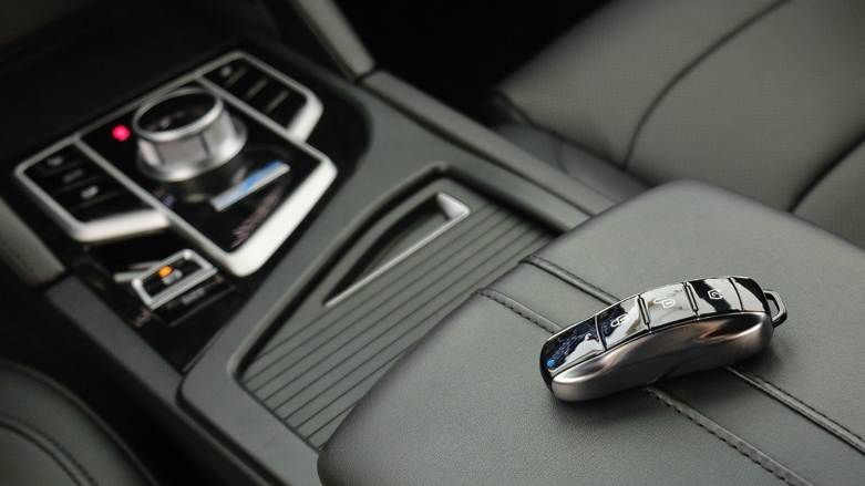 Vista interior de Seres 3 con caja automática y llave de proximidad.