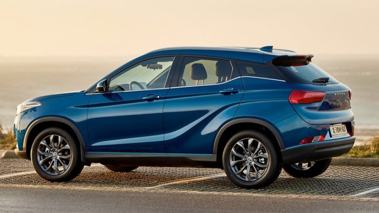 Modelo Seres 3 en color azul, estacionado en bahia con mar de fondo.